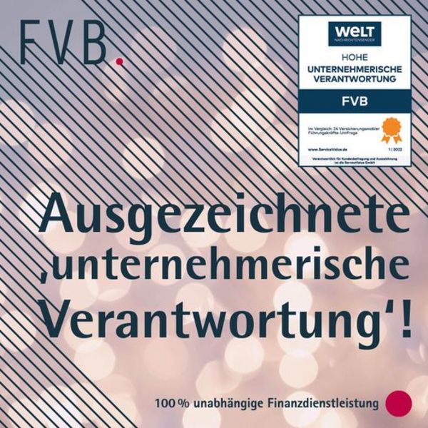 FVB ist gut in Form, 2022 ist noch jung und hier ist die dritte Auszeichnung in diesem Jahr: Der Nachrichtensender WELT zeichnet die FVB für ,Hohe unternehmerische Verantwortung’ aus! – Da ein Unternehmen nichts ohne seine Mitarbeitenden und Kund*innen ist, danken wir wieder herzlich allen, die diese vertrauensvolle Zusammenarbeit möglich machen – Danke!